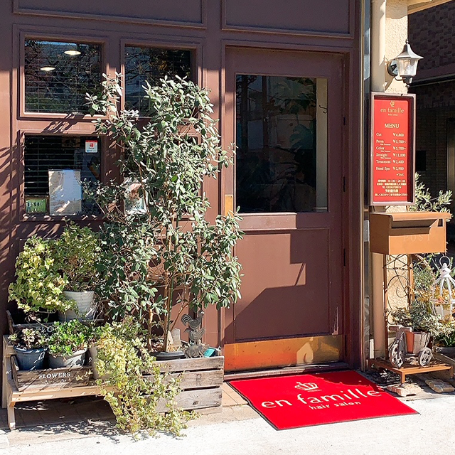 店名の「en famille(アン ファミーユ)」とは、フランス語で「家族のように」という意味で、フランス パリ郊外にあるカフェをイメージした空間づくりをしております。